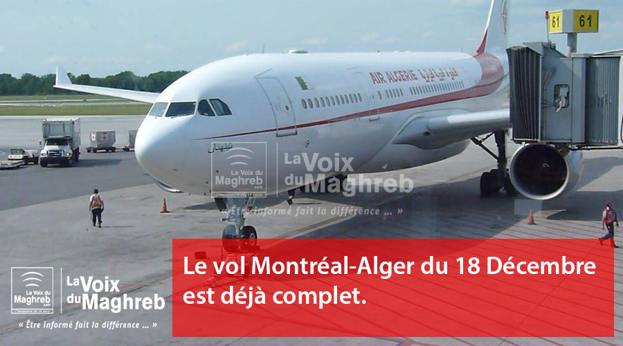 Montréal – Le vol Montréal-Alger du 18 décembre opéré par la compagnie aérienne Air Algérie est déjà complet; c’est ce que nous venons d’apprendre de nos différentes sources d’information.