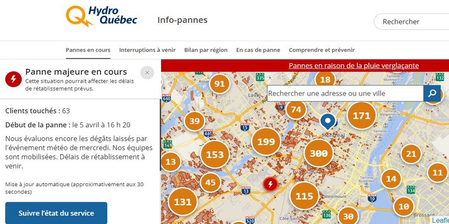 Au moment où nous rédigeons cet article , des dizaines de milliers d’habitants de Montréal ( 187 745 clients) sont privés d’électricité. Cela dure depuis le mercredi 5 avril. Ce jour la, une tempête de verglas s’est abattue sur l’est canadien casant d’importantes coupures d’électricité.