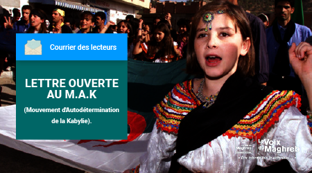 Montréal 26 Décembre 2018 – Nous avons reçu une lettre de l’une de nos lectrices concernant le mouvement d’autodétermination de la Kabylie (M.A.K) adressée au président du Gouvernement provisoire Kabyle M.Ferhat Mehenni dont voici ci-dessous la teneur.